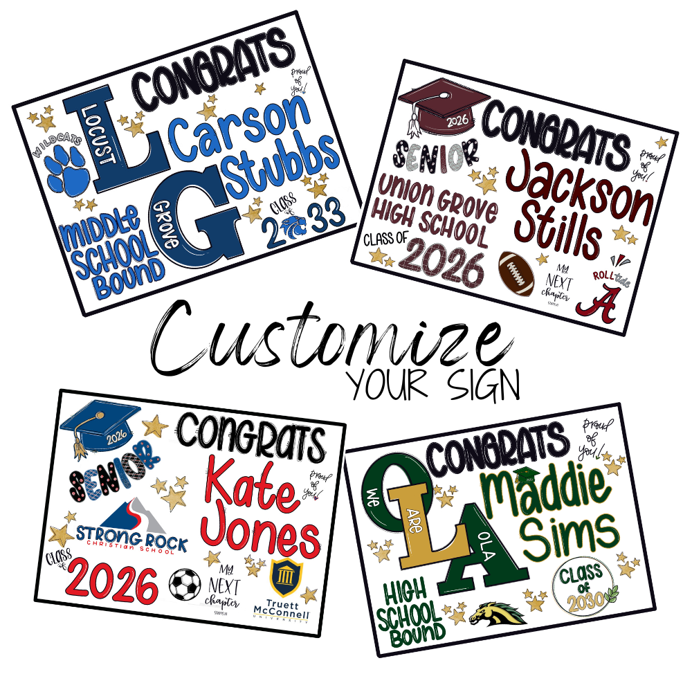 It’s that time of year to start thinking about ways to celebrate our students and their accomplishments. A custom yard sign is a great way to give your child some much deserved attention!